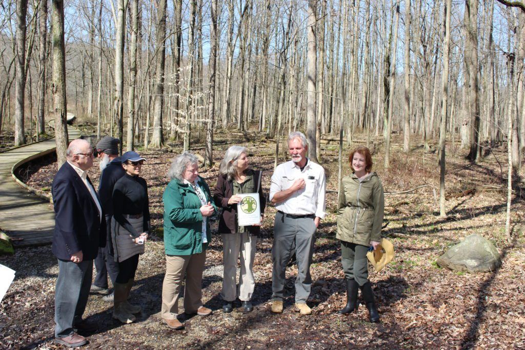 On April 12, our very own Sigrist Woods at The Wilderness Center was inducted into the Old-Growth Forest Network. Somewhat of a celebrity in the conservation world, Dr. Joan Maloof, Executive Director of the Old-Growth Forest Network, travelled to our area and presented a plaque to TWC’s Executive Director, Jeanne Gural, Board President Roger Baker, and Senior Biologist Gary Popotnik. The dedication celebrates the addition of the 19th forest to join the Old-Growth Forest Network in the state of Ohio.